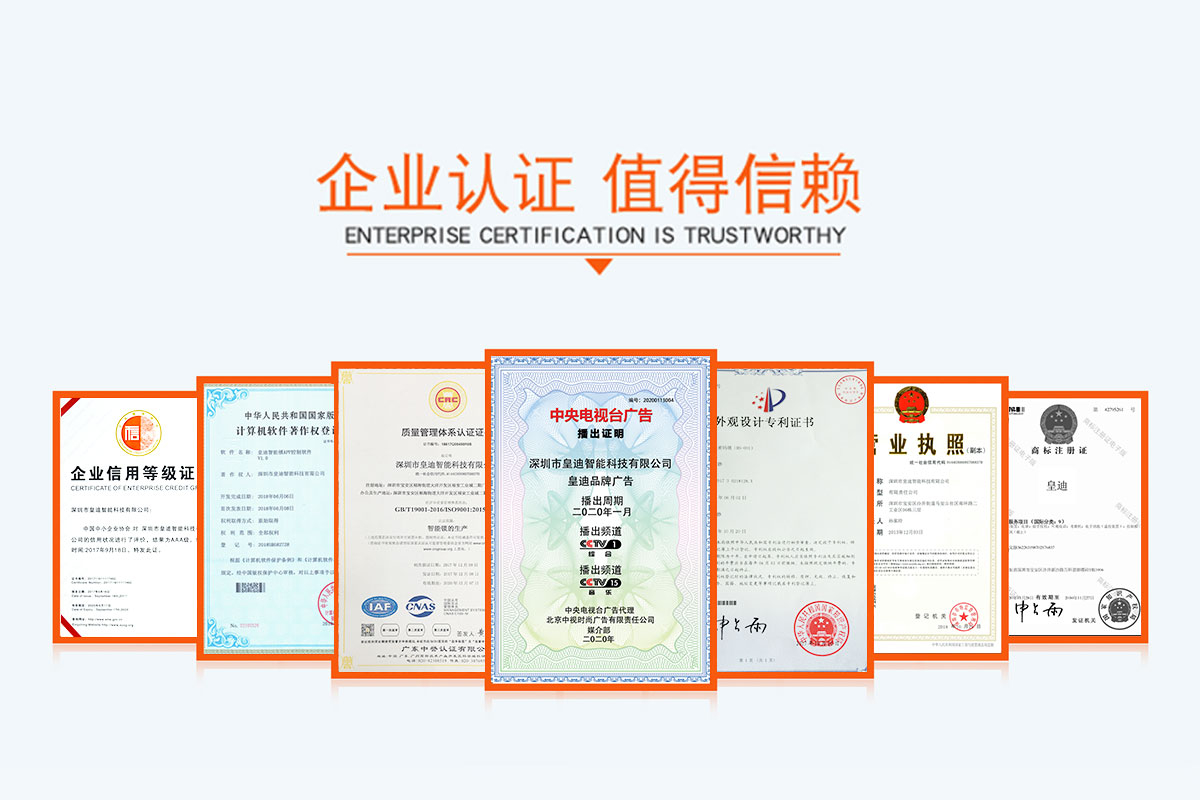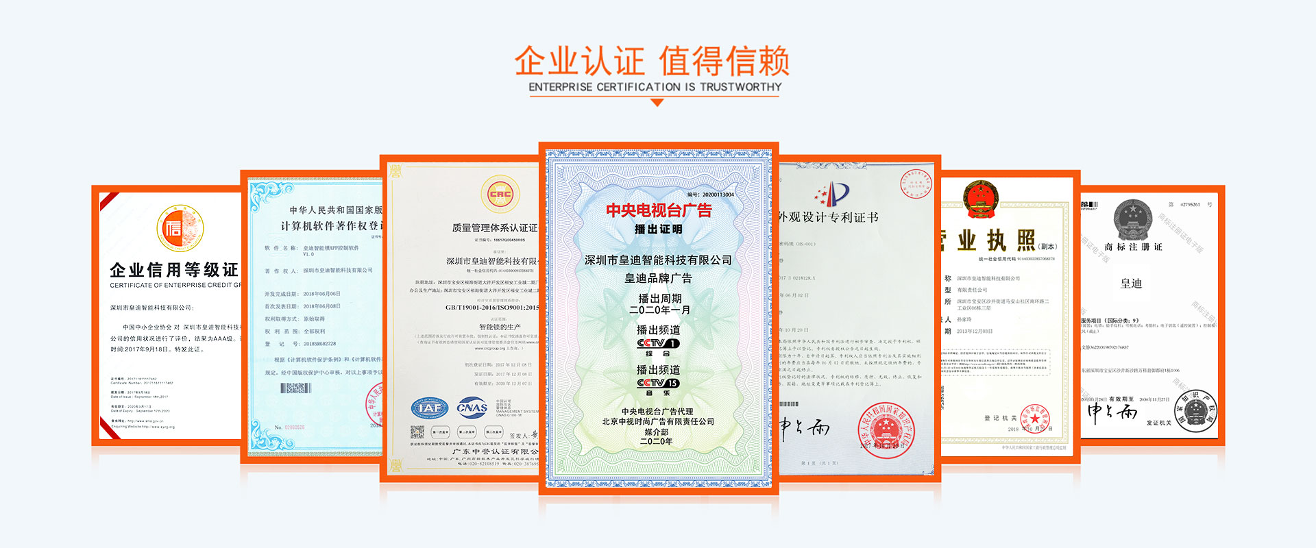 深圳市皇迪智能科技有限公司,是一家集產(chǎn)品研發(fā)、制造、銷(xiāo)售、安裝、售后于一體的全產(chǎn)業(yè)鏈公司,我司專(zhuān)注于酒店刷卡鎖、公寓藍(lán)牙密碼鎖、電子鎖、密碼鎖研發(fā),生產(chǎn),銷(xiāo)售.是國(guó)家高新技術(shù)企業(yè),公司已通過(guò)ISO9001/2015標(biāo)準(zhǔn)認(rèn)證,并擁有多項(xiàng)國(guó)家實(shí)用新型專(zhuān)利、外觀專(zhuān)利及計(jì)算機(jī)軟件著作權(quán); 皇迪玻璃門(mén)鎖廠家一直秉承“以顧客為中心,以人為本,長(zhǎng)期艱苦奮斗”的經(jīng)營(yíng)理念,為全球每一位消費(fèi)者提供舒適,便捷,安全的高品質(zhì)生活。
